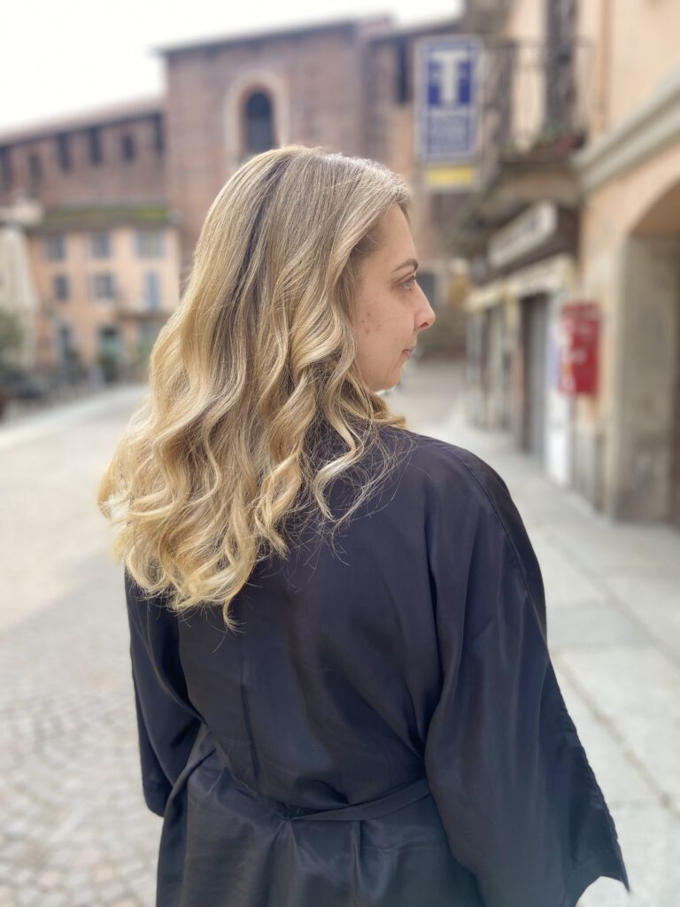 Tecnica di schiaritura naturale che crea luminosità e profondità. Perfetta per un effetto morbido e luminoso.